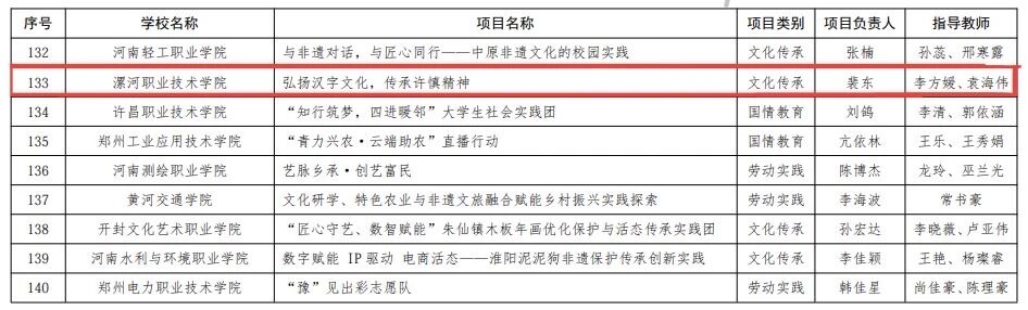 近日,河南省教育厅公布《关于第九届普通高等学校“出彩中原”大学生社会实践活动项目立项和第七届普通高等学校“出彩中原”大学生社会实践活动项目结项评定结果的公示》的通知,我校《弘扬汉字文化,传承许慎精神》在第九届河南省“出彩中原”大学生社会实践活动中喜获立项。